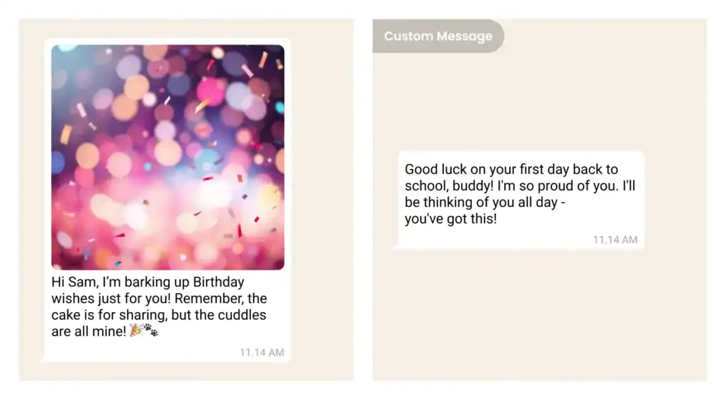 Surprise your child with weekly messages from their pet.